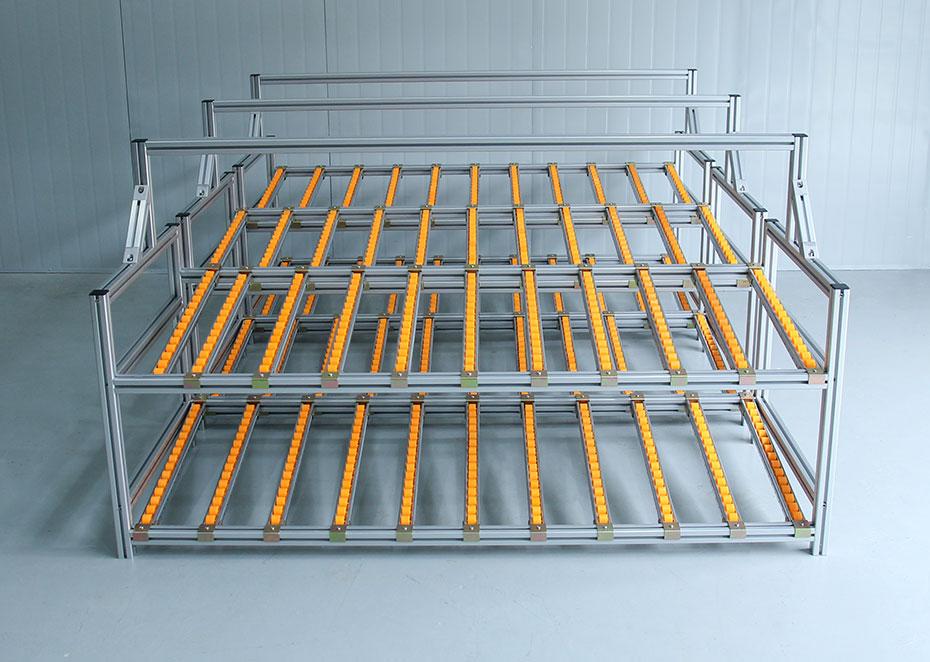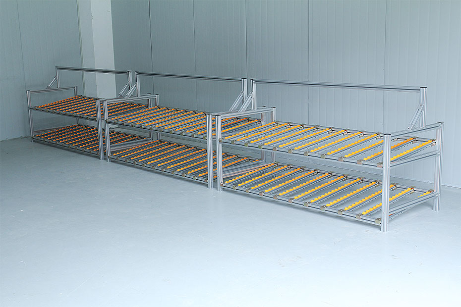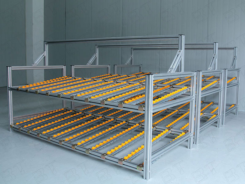 流利式貨架又稱滑移式貨架,采用鋁合金,鈑金等流利條,利用貨物臺架的自重,從一邊通道存貨,另一邊通道取貨實現先進先出,存儲方便,以及一次補貨多次取貨。流利架存儲效率高,適合大量貨物的短期存放和揀選。廣泛應用于制造業、商業、配送中心、裝配車間以及出貨頻率較高的倉庫。使用鋁型材為框架,使用鋁型材為框架,使用壽命長,改造簡便,可隨時隨需擴展結構等特點。